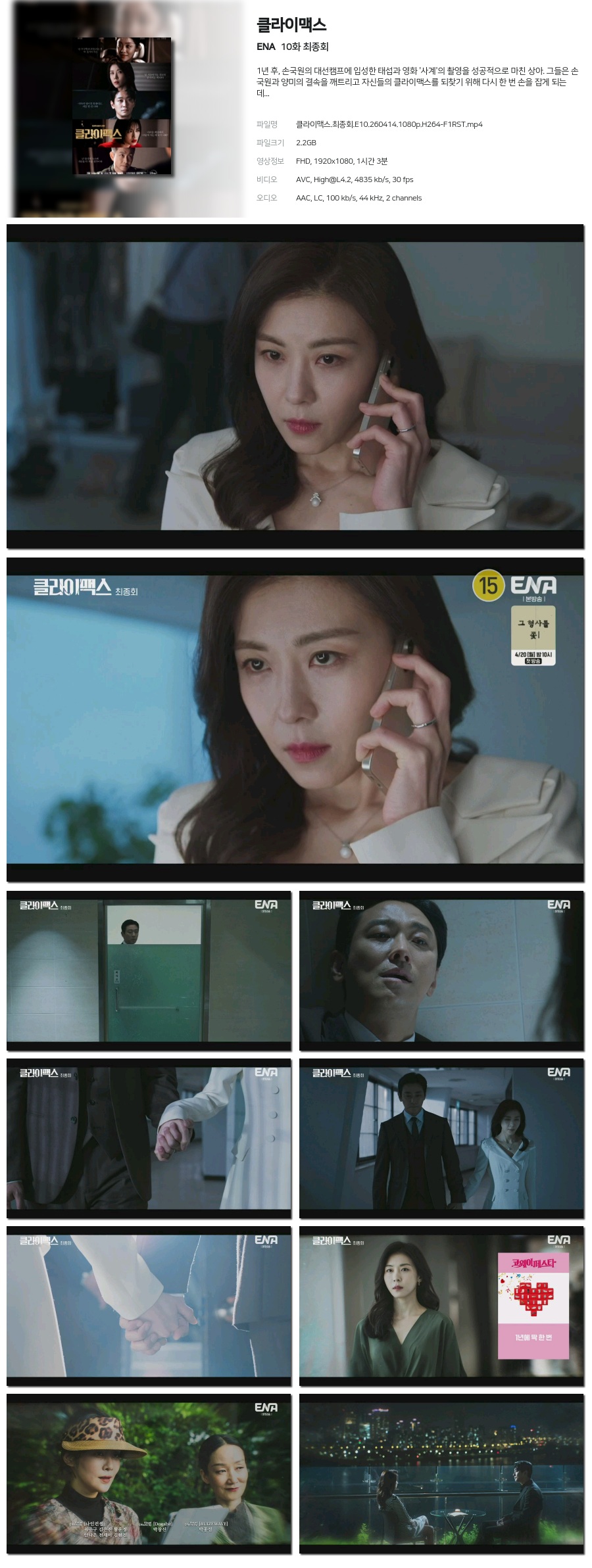 선택다운로드 찜하기 성인제외 고화질보기 20 50 100 [ENA] 클라이맥스.E10.260414.720p.H264-F1RST 드라마 | 1.2G | fkaqhfm 130 → 60P [ENA] 클라이맥스.E10.260414.1080p.H264-F1RST 드라마 | 2.2G | fhftm 230 → 120P [ENA] 클라이맥스.E10.260414.720p.H264-F1RST 드라마 | 1.2G | dosel 130 → 60P [ENA] 클라이맥스.E10.260414.1080p.H264-F1RST 드라마 | 2.2G | fmvk 230 → 120P [MBC] 첫 번째 남자.E84.260414.720p.H264-F1RST 드라마 | 335.1M | fkaqhfm 2,000C 첫 번째 남자.E84.260414.1080p.H264-F1RST 드라마 | 591.8M | 친한친구 2,000C [MBC] 첫 번째 남자.E84.260414.1080p.H264-F1RST 드라마 | 591.8M | fhftm 2,000C [MBC] 첫 번째 남자.E84.260414.720p.H264-F1RST 드라마 | 335.1M | dosel 2,000C [ENA] 클라이맥스.E10.260414.480p.H264-F1RST (2) 드라마 | 453.2M | dnjghf 50 → 20P [MBC] 첫 번째 남자.E84.260414.1080p.H264-F1RST 드라마 | 591.8M | fmvk 2,000C [한드완결] 폭력서열(이정하,김도완).E01~08(完).1080p.x264.AAC-BCG 드라마 | 4.9G | 켓츠님v 500 → 250P 신작넷플 공룡들 스티븐스필버그.E01~04(完).1080p.WEB.h264-EDITH 드라마 | 9.3G | 켓츠님v 960 → 480P 신작넷플 꿈꾸던 로맨스(지수,서인국).E01~10(完).1080p.x264.AAC-BCG 드라마 | 7.7G | 켓츠님v 790 → 390P 닥터신.09~10화(이번주묶음).260412.1080p.H264-F1RST 드라마 | 4.9G | 켓츠님v 500 → 250P [TV조선] 닥터신.E10.260412.1080p.H264-F1RST (1) 드라마 | 2.4G | 블루소닉 250 → 130P [TV조선] 닥터신.E09.260411.1080p.H264-F1RST (1) 드라마 | 2.5G | 블루소닉 250 → 130P 19 [최신작] ㅅr 냥 개 들 1 (01화 - 08화) 완결 [우 도환,이 상이] 최고화질 (12) 드라마 | 7.0G | 블루소닉 710 → 360P [MBC] 첫 번째 남자.E84.260414.480p.H264-F1RST 드라마 | 138.2M | dnjghf 2,000C 대한민국에서 건물주 되는 법.09~10화(이번주묶음).260412.720p-NEXT 드라마 | 2.5G | 켓츠님v 4,000C 대한민국에서 건물주 되는법 10회 260412 드라마 | 427.8M | blackjak 2,000C 1 2 3 4 5 6 7 8 9 10